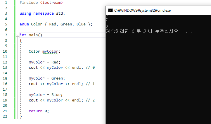 cout << myColor << endl; // 0