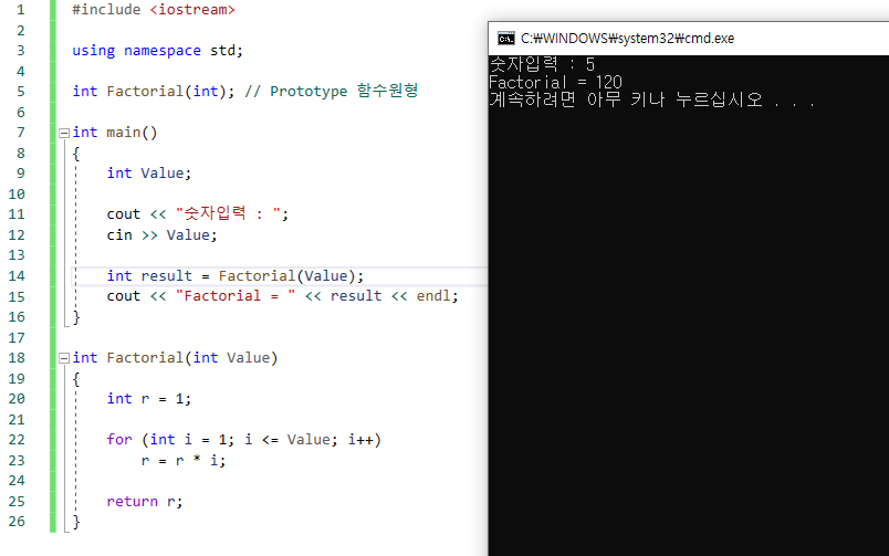 int Factorial(int); // Prototype 함수원형
