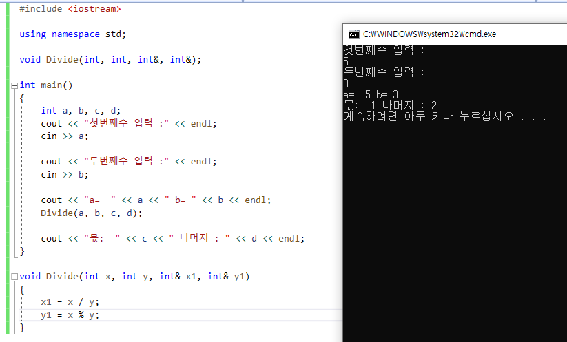 cout << "몫: " << c << " 나머지 : " << d << endl;