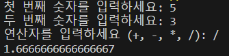 operator = input("연산자를 입력하세요 (+, -, *, /): ")