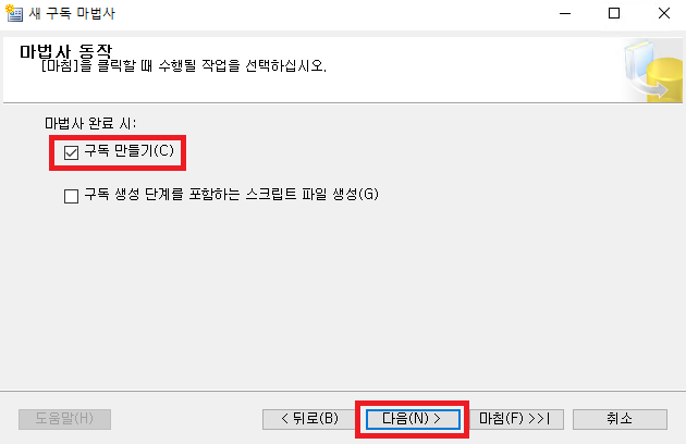 마법사 완료 시 구독 만들기(C)에
