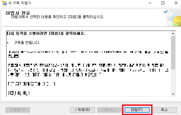 구독 수행에 대한 설정과 내용이 나옵니다.